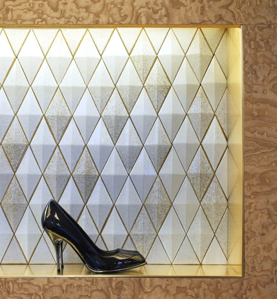 Negli ultimi anni, infine, Teamwork progetta e sviluppa in collaborazione col design team interno al brand alcune piastre tridimensionali formato 24×86 cm. Destinato a vari store, il progetto è caratterizzato da diversi prodotti, tutti studiati in base alle rispettive esigenze progettuali. Le piastrelle sono poi state utilizzate per il rivestimento, per il pavimento e anche per le mensole espositive.